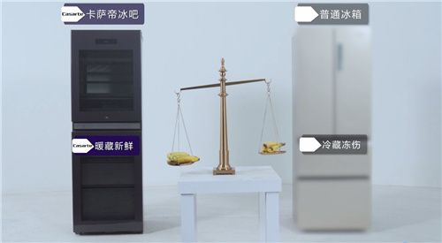 | 家里有冰箱了,還有必要買臺冰吧嗎?我們平時買了水果都習慣放在冰箱冷藏室里,不過也經(jīng)常發(fā)現(xiàn)一些水果冷藏反而更容易壞。其實,像香蕉、芒果這些熱帶水果,并不喜歡太冷的環(huán)境,試試暖藏儲鮮效果反而會更好。 4月24日,卡薩帝冰吧發(fā)布一段天平實驗視頻。視頻顯示,兩份同樣重量的香蕉分別在卡薩帝冰吧和普通冰箱儲存3天,放在天平上可以看出,天平向一側(cè)傾斜,而這一側(cè)放的就是卡薩帝冰吧所儲存的香蕉。而重量差別的原因,就在于一個是暖藏,一個是冷藏。