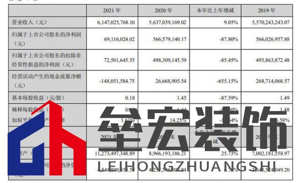 關(guān)于發(fā)展戰(zhàn)略,帝歐家居稱將持續(xù)圍繞瓷磚和衛(wèi)浴兩大家居建材板塊,不斷深化、形成聯(lián)動(dòng)、協(xié)同發(fā)展,持續(xù)提升品牌優(yōu)勢(shì)、渠道優(yōu)勢(shì)、 產(chǎn)品優(yōu)勢(shì),提高產(chǎn)品的市場(chǎng)占有率,通過(guò)建立、健全長(zhǎng)效激勵(lì)約束機(jī)制,吸引和留住專業(yè)管理人才,充分調(diào)動(dòng)其積極性和創(chuàng)造性,提升核心團(tuán)隊(duì)凝聚力和企業(yè)核心競(jìng)爭(zhēng)力。長(zhǎng)期打造并不斷提升在設(shè)計(jì)研發(fā)、精細(xì)化生產(chǎn)、營(yíng)銷渠道等 方面的綜合競(jìng)爭(zhēng)優(yōu)勢(shì),為客戶提供優(yōu)質(zhì)的產(chǎn)品與服務(wù),致力于成為國(guó)內(nèi)一流的整體家居裝修產(chǎn)品解決方案的提供商和服務(wù)商。 2022年4月30日,帝歐家居集團(tuán)股份有限公司(SZ002798,簡(jiǎn)稱:帝歐家居)發(fā)布2021年度業(yè)績(jī)報(bào)告。報(bào)告期內(nèi),帝歐家居實(shí)現(xiàn)營(yíng)業(yè)收入約61.47億元,同比增長(zhǎng)9.05%;歸屬于上市公司股東的凈利潤(rùn)約6912萬(wàn)元,同比下降87.80%;歸屬于上市公司股東的扣除非經(jīng)常性損益的凈利潤(rùn)約7250萬(wàn)元,同比下降85.45%;基本每股收益0.18元/股,同比下降87.59%。