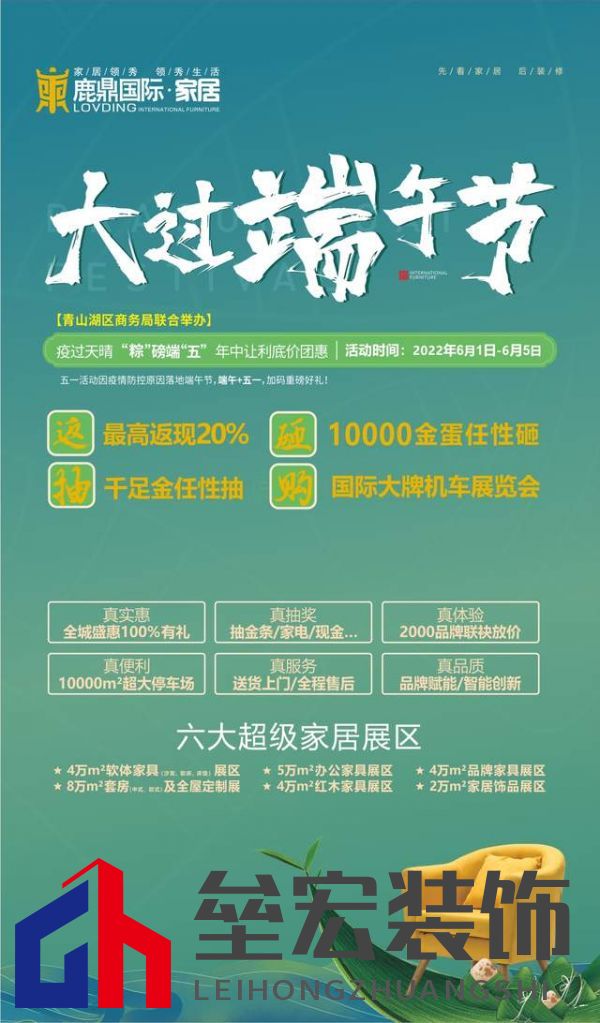 ??為此,鹿鼎家居特制定超大力度補貼計劃,以“大過端午節(jié)”為青山湖區(qū)消費節(jié)家居專場主題,設計三大特惠活動:1、全場滿額最高即返消費金額20%現(xiàn)金購物卡活動、2、抽金條活動,全場狂抽80克千足金條;3、滿額即砸金蛋活動,100%中獎等三大活動。鹿鼎家居將把本次“大過端午節(jié)”活動打造成好物、特惠、好服務的新主場;打造成2000多家家居品牌增量場。