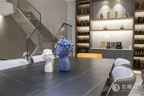 ??客廳和餐廳無縫連接,空間對話自由,巖板餐桌和桌角支撐弧形設計,耐磨易清潔特點,適用孩子家庭,配上藍白裝飾雕塑,縈繞輕松用餐享受。 ??□ □ □ ??“ 逐光而居,自然純粹 ”