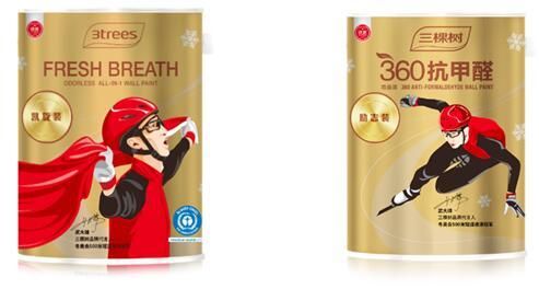 ??在本屆武大靖冬奧備賽期間,三棵樹就為武大靖父母的惠州新家進(jìn)行了精心涂刷,綠色防霉、凈味環(huán)保的出色產(chǎn)品服務(wù),給大靖全家都留下了深刻印象。為此武大靖也將在現(xiàn)場(chǎng)推薦合作同款涂料,其中包括國(guó)內(nèi)率先獲得德國(guó)藍(lán)天使認(rèn)證的“鮮呼吸凈味全效墻面漆”,以及添加“醛化水”功能材料,能有效凈化甲醛的“360抗甲醛墻面漆”,作為冠軍同款的武大靖金罐包裝產(chǎn)品,早已成為了不少家裝人士的首選。