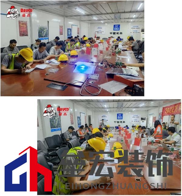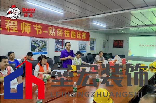 右三:中國陶瓷工業(yè)協(xié)會瓷磚粘貼技術(shù)專業(yè)委員會專家組副組長周碧平 ??隨后,中國陶瓷工業(yè)協(xié)會瓷磚粘貼技術(shù)專業(yè)委員會副會長單位高級培訓(xùn)講師,德高全國工程發(fā)展事業(yè)部產(chǎn)品技術(shù)應(yīng)用總監(jiān)丁天華展開了以“攻克瓷磚空鼓,締造精品工程”為主題的工藝培訓(xùn),針對瓷磚鋪貼空鼓的原因做了詳細分析和提出了相應(yīng)解決方案,并對接下來“最美工匠”貼磚比賽的規(guī)則做了詳細介紹。培訓(xùn)結(jié)束后,師傅們立即全力以赴投入到貼磚技能理論考試中。