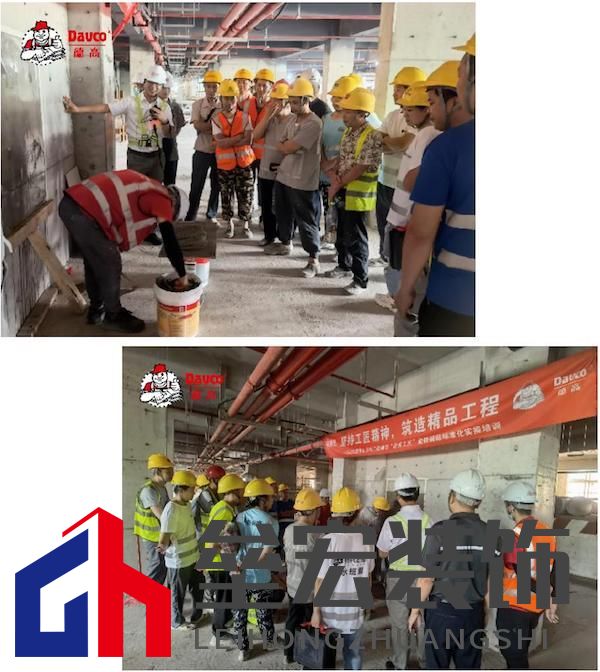 ??理論考試結(jié)束后,德高工程師對參賽師傅展開瓷磚鋪貼標準施工工藝實操培訓(xùn)。德高堅持廠商一體化,致力于推廣薄貼工藝,通過管理要點講解及薄貼工藝實操演示,認真細致地向施工師傅推廣普及產(chǎn)品施工標準工藝。 ??德高工程師傳授標準薄貼工藝