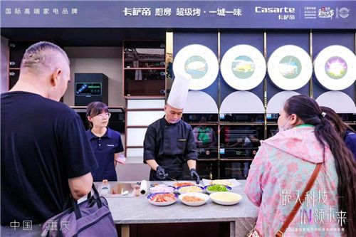 | 現(xiàn)在,越來(lái)越多用戶會(huì)選擇在家里下廚做飯。調(diào)查顯示,這屆年輕人正逐漸告別外賣,鉆進(jìn)廚房開始自己做飯??蓽?zhǔn)備好了食材、餐具,卻發(fā)現(xiàn)連基本的火候都掌握不熟,做飯時(shí)手忙腳亂。不過(guò),在這兩天的重慶,日常做飯中出現(xiàn)的這些問(wèn)題有了解決方案。哪怕廚房新手,也能3分鐘烤出意式薄餅披薩。其中有什么奧秘呢?這要?dú)w功于卡薩帝高端廚房。 6月24日,“重百家電節(jié)”在重慶解放碑正式啟動(dòng),卡薩帝廚房“超級(jí)烤?一城一味”活動(dòng)同步拉開帷幕。在卡薩帝打造的智慧廚房場(chǎng)景中,用戶可以在銀河烤箱智慧菜譜的加持下,一鍵烘烤,輕松烹飪一桌美食大餐。即使是廚房小白,也能在家輕松做大廚。同時(shí),卡薩帝智慧廚房與阿爾法魚進(jìn)行了深度結(jié)合,能為用戶一站式解決烹飪難題。