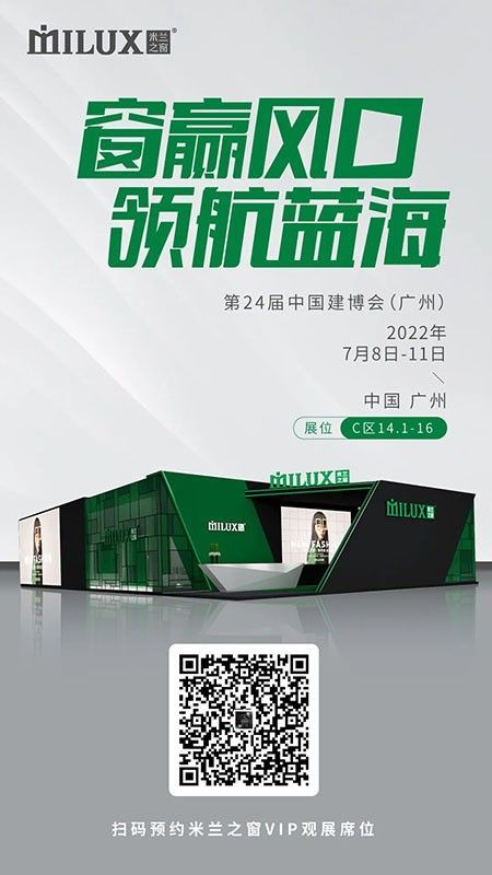 ??作為中國(guó)系統(tǒng)門(mén)窗行業(yè)的領(lǐng)軍品牌,米蘭之窗不斷引領(lǐng)中國(guó)門(mén)窗新風(fēng)尚,此次展會(huì)不僅是米蘭之窗對(duì)產(chǎn)品工藝創(chuàng)新展示,更是在獨(dú)具影響力的行業(yè)舞臺(tái)彰顯品牌綜合實(shí)力的亮劍之行。2022年品牌首秀即將拉開(kāi)序幕,行業(yè)盛世紛呈,7月8日-11日,中國(guó)進(jìn)出口商品交易會(huì)展館(廣交會(huì)展館)C區(qū)14.1-16展位,米蘭之窗整裝待發(fā),勢(shì)必領(lǐng)潮中國(guó)建博會(huì),如約相”建“,聚享未來(lái)。 |