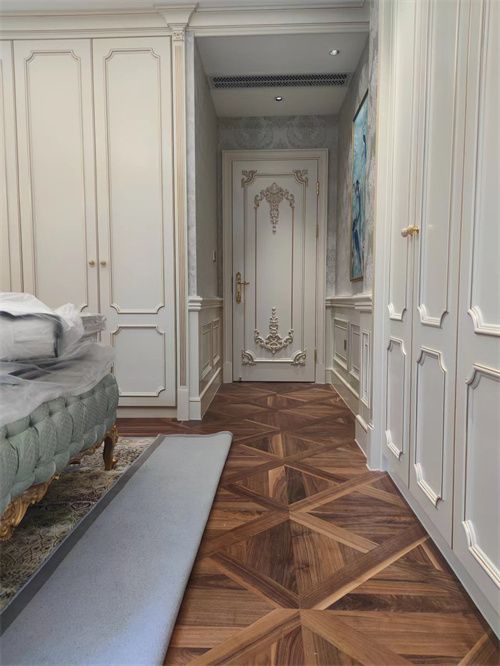 ??作為歐洲各國現(xiàn)有皇宮、總統(tǒng)府等殿堂級場所首選木地板品牌,金鋼鉑林歐洲宮廷御用拼花地板,同樣廣泛使用胡桃木。