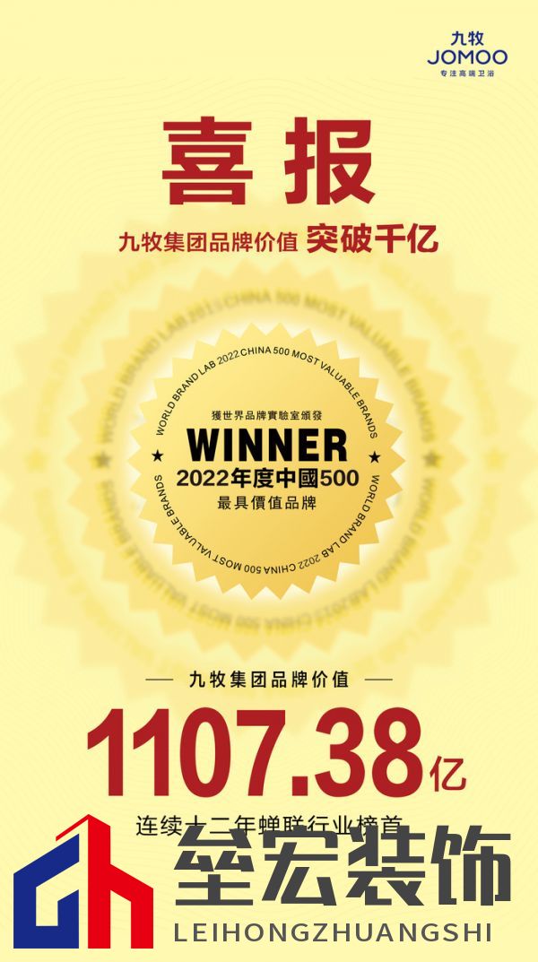 | 7月26日,由世界品牌實驗室(World Brand Lab)主辦的(第十九屆)“世界品牌大會”在北京舉行,大會公布了2022年《中國500最具價值品牌》分析報告,九牧集團各品牌與國家電網(wǎng)、海爾、騰訊、華為等品牌一同上榜中國500最具價值品牌,并以1107.38億的品牌價值再創(chuàng)中國衛(wèi)浴企業(yè)佳績,連續(xù)12年蟬聯(lián)行業(yè)榜首!