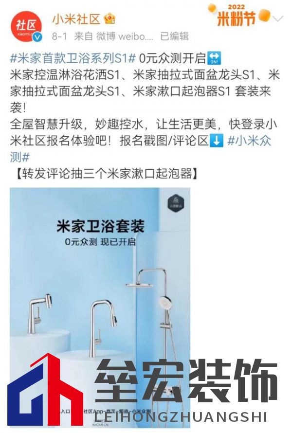 自手機圈脫穎而出后,小米開始性價比和質(zhì)價比的模式介入了與“家”和“生活”相關的多個企業(yè),小米生態(tài)鏈由此而生。 作為小米的自營智能家庭品牌,米家旨在給消費者帶來集可靠品質(zhì)、優(yōu)良設計、合理定價于一身的智能家居產(chǎn)品,涵蓋智能安防、智能廚衛(wèi)、智能家電、智能照明、軟裝家紡等多個品類。 2020年10月,小米公司曾對大白衛(wèi)浴進行戰(zhàn)略注資,這家智能五金衛(wèi)浴品牌也正式成為小米生態(tài)鏈企業(yè)的新成員。 8月1日,小米米家首款衛(wèi)浴系列S1發(fā)布,將于8月8日0點正式發(fā)布并開啟預售。這一動作也被視為小米正式進軍衛(wèi)浴領域! 此次,小米共推出了四款衛(wèi)浴系列產(chǎn)品,分別是米家控溫淋浴花灑S1、米家抽拉式面盆龍頭S1、米家抽拉式廚房龍頭S1以及米家漱口起泡器S1,售價低至49元。
