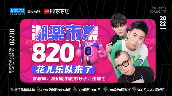 2022紅星美凱龍漢陽(yáng)商場(chǎng)820潮樂市集 2022顧家家居816第九屆全民顧家日 8月20日18:00 ?花兒樂隊(duì)?點(diǎn)燃江城 MACALLINE x KUKA