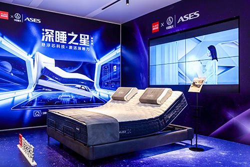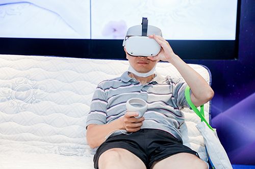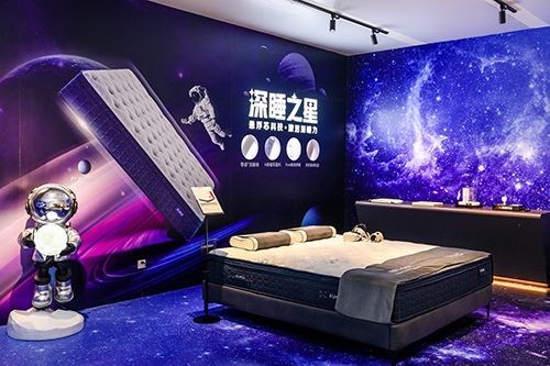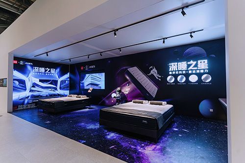 ▲顧家家居深睡之星床墊展區(qū) ??在深睡之星系列床墊展區(qū),與產(chǎn)品名完美契合的場(chǎng)景設(shè)計(jì)給人帶來(lái)身處宇宙星空的震撼之感。在深睡之星科技版體驗(yàn)專區(qū),顧家家居還配備了專門的VR眼鏡。利用AR虛擬技術(shù),通過(guò)融入視覺(jué)和聽(tīng)覺(jué)的場(chǎng)景化體驗(yàn),參觀者在體驗(yàn)產(chǎn)品時(shí)可以身臨其境感受漫游星河的感覺(jué),在空間的交互與時(shí)間的變幻中,真正享受深睡之星科技版的輕懸浮舒壓睡感和自由隨心的智能科技。