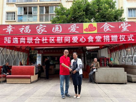 ??回訪團(tuán)隊(duì)來(lái)到榜樣人物小區(qū)樓下時(shí),王蘭蘭還在為社區(qū)愛心食堂一場(chǎng)公益活動(dòng)而忙碌著。見到回訪團(tuán)隊(duì)捧著鮮花到來(lái),她馬上熱情地迎上來(lái)握手問(wèn)候。