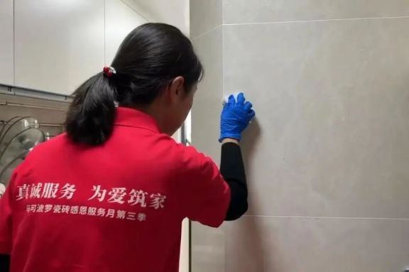 ??16年如一日踐行公益,王蘭蘭家中的展柜擺滿了各式各樣的愛心榮譽(yù)獎(jiǎng)杯和證書。昆明馬可波羅瓷磚服務(wù)團(tuán)隊(duì)也為王蘭蘭家進(jìn)行了專業(yè)的瓷磚清潔服務(wù),以服務(wù)熱情致敬榜樣人物的溫暖愛心。