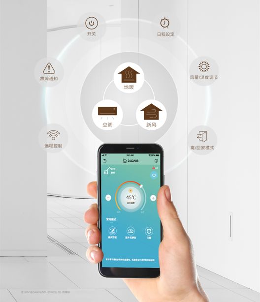 ??大金空調(diào)能夠?yàn)槊總€(gè)人的家提供個(gè)性化選擇,這得益于大金空調(diào)豐富的產(chǎn)品線及多樣的產(chǎn)品功能,大金研發(fā)了針對(duì)客廳、臥室、兒童房、廚房、衛(wèi)生間、衣帽間、書(shū)房等各個(gè)空間的空調(diào)室內(nèi)機(jī),能夠滿(mǎn)足不同空間的功能性需求,特殊的廚房、衛(wèi)浴空間也能擁有無(wú)油煙、不潮濕的空氣體驗(yàn)。 ??同時(shí),大金全新推出了中央空調(diào)+新風(fēng)+地暖智聯(lián)一體的舒適系統(tǒng),夏天用空調(diào),清涼無(wú)風(fēng)感;冬天用地暖,溫暖又舒適。值得一提的是,大金地暖采用空氣源熱泵技術(shù),利用少量電量和免費(fèi)空氣能,獲得4倍溫暖*,對(duì)比常見(jiàn)燃?xì)忮仩t,費(fèi)用節(jié)省率最高可達(dá)53%*1。 ??全屋空氣智能互聯(lián) 實(shí)現(xiàn)更高生活品質(zhì)