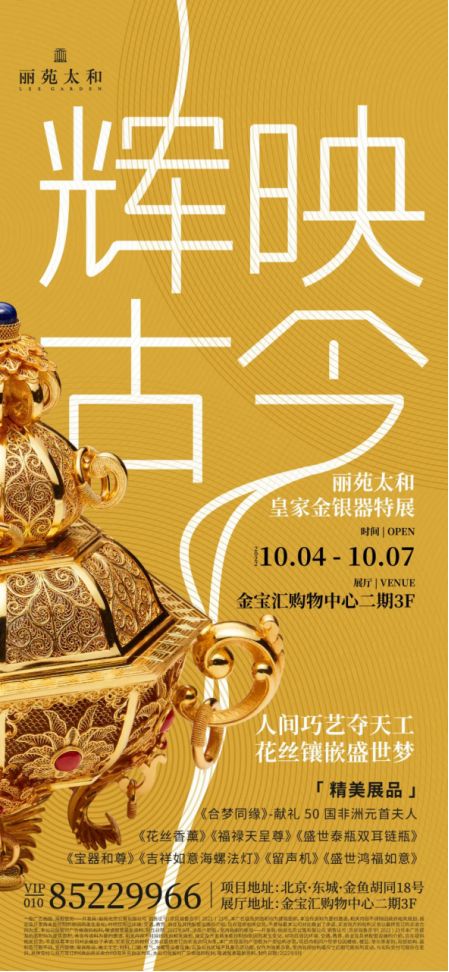 | —— 2022.10.4–10.7 邀你共鑒中華技藝之美  人間巧藝奪天工 花絲鑲嵌盛世夢(mèng) 2022年10月4日-7日 “輝映古今”皇家金銀器特展 在麗苑太和盛大舉行  八件精美展品 傾世而來 氣派恢宏 《合夢(mèng)同緣》-獻(xiàn)禮 50 國非洲元首夫人 《花絲香薰》《福祿天呈尊》 《盛世泰瓶雙耳鏈瓶》《寶器和尊》 《吉祥如意海螺法燈》《留聲機(jī)》 《盛世鴻福如意》     10月5日 中國工藝美術(shù)大師 花絲鑲嵌國禮制作大師 ——趙春明 親臨現(xiàn)場 與麗苑貴賓共話傳統(tǒng)文化與非遺技藝 在金銀器的世界里 感受華夏民族的非凡智慧與藝術(shù)創(chuàng)造力     < 3000多年歷史 燕京八絕之一 花絲鑲嵌 > “采金為絲,妙手編結(jié),嵌玉綴翠,是為一絕?!?/p> 花絲鑲嵌工藝,主要用于皇家飾品制作,距今已有3000余年歷史。它起源于春秋戰(zhàn)國時(shí)代,在經(jīng)濟(jì)發(fā)達(dá)的唐宋時(shí)期得到迅速發(fā)展,又因絲綢之路美名遠(yuǎn)揚(yáng),在明清達(dá)到巔峰鼎盛。花絲鑲嵌尤以編織、堆壘技法見長,常用點(diǎn)翠工藝,取得金碧輝煌的效果。2008年6月花絲鑲嵌制作技藝被列入國家級(jí)非物質(zhì)文化遺產(chǎn)名錄。    “我們這一行看著很枯燥很乏味,但是鉆進(jìn)去以后,了解它的發(fā)展歷史以后,你會(huì)非常喜歡它,熱愛它,能帶給年輕人充分的自信。我始終希望這么優(yōu)秀的傳統(tǒng)文化和傳統(tǒng)技藝能一直傳承下去?!?/p> ——中國工藝美術(shù)大師、非物質(zhì)文化遺產(chǎn)花絲鑲嵌傳承人趙春明  趙春明大師從事花絲鑲嵌至今已40余年,除了花絲鑲嵌,他還精通鏨刻、摟胎等手工技藝,在設(shè)計(jì)理念上亦有獨(dú)到之處,不僅制作了許多精美的花絲鑲嵌作品如《圓明園-金玉大水法》、《和平暢想》、《合夢(mèng)同緣》、《黃鶴樓》、《鸛雀樓》等,還為首都博物館、十三陵博物館、杭州博物館等復(fù)制和修復(fù)了《烏紗翼善冠》、《六龍三鳳冠》、《金翼善冠》、《金執(zhí)壺》等數(shù)百件文物。   < 偉大的作品 在時(shí)光淬煉中誕生 > 精益求精、專屬性、唯一性,偉大作品在時(shí)光淬煉中誕生。 麗苑太和亦是如此,作為富華置地2022年在北京的又一力作,是繼「長安太和」后延續(xù)富華集團(tuán)在內(nèi)城的頂奢產(chǎn)品系。  東城區(qū)是北京歷史文化遺存、胡同四合院與非物質(zhì)文化遺產(chǎn)最為密集的地區(qū),也是名副其實(shí)的“首都文化中心區(qū)”。麗苑太和位于東城區(qū)核心處,金魚胡同18號(hào),一面是以故宮為代表的恢弘的皇家建筑與園囿,一面是以金寶街為代表的前衛(wèi)的全球化潮流街區(qū)。在這里,傳統(tǒng)文化與潮流文化共生共榮,如花絲鑲嵌絕世工藝一般,二者合而為一交織出極富戲劇張力的多元化內(nèi)城生活。  |