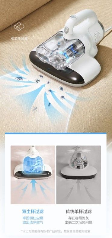??美的除螨儀強(qiáng)勢破局,強(qiáng)力除螨引領(lǐng)行業(yè)技術(shù)革新 ??除螨儀作為吸塵器核心技術(shù)的延伸,一直以來,核心技術(shù)都被戴森為首的歐美品牌占領(lǐng)技術(shù)高地。而吸力,則是戴森的殺手锏。然而消費(fèi)者為了除螨,卻要付4990元購買戴森吸塵器當(dāng)除螨儀用,上千的價(jià)格讓消費(fèi)者望而卻步,加上外國品牌技術(shù)的封鎖,讓國產(chǎn)除螨儀發(fā)展陷入技術(shù)桎梏。 ??美的在技術(shù)上勇于創(chuàng)新,敢當(dāng)“第一個(gè)吃螃蟹”的國內(nèi)領(lǐng)軍品牌。在對已有技術(shù)方案進(jìn)行全面探測對比后,積極需要除螨新的突破點(diǎn),找到一個(gè)有效的技術(shù)路徑,推出多款有效解決螨蟲問題的除螨儀,快速引爆市場。 ??2021年,美的首創(chuàng)行業(yè)內(nèi)擁有高壓電擊概念的除螨儀MX3,通過電擊瞬間產(chǎn)生3000V高壓,電離空氣產(chǎn)生負(fù)離子,負(fù)離子和細(xì)菌、螨蟲、塵埃結(jié)合,在有效殺死螨蟲的同時(shí),還能凈化空氣,被評為2021年度家電“好產(chǎn)品”代表。 ??如今,美的在MX5上推出全新一代除螨核心技術(shù)高壓電擊+雙杯過濾,徹底變革了純比拼吸力的時(shí)代,實(shí)現(xiàn)了除螨儀數(shù)十年歷史中的跨越式創(chuàng)新。 ??創(chuàng)新雙杯塵設(shè)計(jì),分濾塵螨潔凈不跑灰 ??除螨儀從核心結(jié)構(gòu)來講是個(gè)小吸塵器,吸塵器一大痛點(diǎn)是長期使用后由于灰塵堵塞濾芯導(dǎo)致吸力大幅度下降。