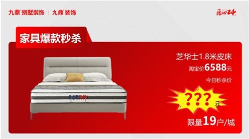 八重鉅惠享不停 燃爆家裝旺季 家具爆款秒殺 芝華士1.8皮床,淘寶價6588元,今日秒殺價???元(限量19戶/城)
