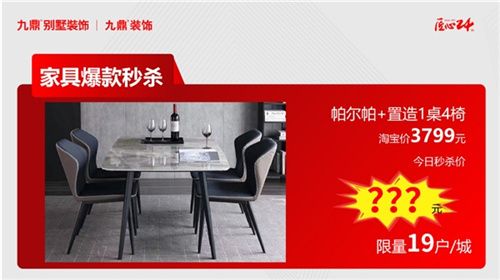 帕爾帕+置造1桌子上椅子,淘寶價錢3799,今日秒殺價???元(限量19戶/城)