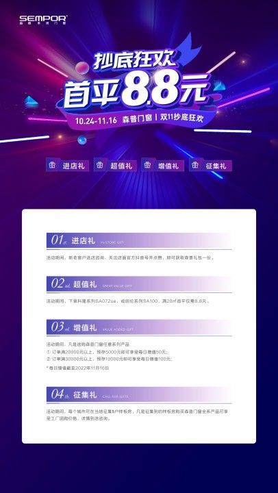 | ??聽說今年雙11各平臺(tái)都推陳出新家家都有新玩法,無論玩法新舊,面對(duì)一年一度的雙11,羊毛薅到才是硬道理,不管白貓黑貓捉到老鼠的才叫好貓,平臺(tái)玩法與時(shí)俱進(jìn),作為一個(gè)消費(fèi)者的薅羊毛大法也與時(shí)俱進(jìn),玩法升級(jí),消費(fèi)者也自動(dòng)更新升級(jí)。 ??從2009年天貓首次舉辦雙11,到今年已經(jīng)走過了14個(gè)年頭,雙11這件事已經(jīng)被賦予了太多意義,它不僅是大眾消費(fèi)集中爆發(fā)的時(shí)間節(jié)點(diǎn),同樣也是平臺(tái)、品牌業(yè)績(jī)沖刺的關(guān)鍵時(shí)刻,但在外部宏觀環(huán)境與政策環(huán)境的變化之下,天貓、京東和抖音在今年雙11玩法上均做出不同改變。 ??天貓活動(dòng)規(guī)則 ??活動(dòng)時(shí)間:從阿里已公布大促節(jié)奏看,在預(yù)售時(shí)間方面,天貓今年有所縮短。那可也太香了,這意味著我們?cè)僖膊挥冒疽箍嗟入p11了,無疑是一種更加人性化貼合消費(fèi)者需求的好舉措。 ??京東活動(dòng)規(guī)則 ??活動(dòng)時(shí)間:今年京東11.11一共分為5個(gè)時(shí)期:種草期、預(yù)售|預(yù)熱期、開門紅、品類場(chǎng)景期、高峰期。新增了種草期,10月份開啟種草期,10月下旬進(jìn)入預(yù)售預(yù)熱期;同時(shí)今年開門紅28小時(shí)將上線分時(shí)段玩法。京東新玩法有些許復(fù)雜,但是優(yōu)點(diǎn)是可讓消費(fèi)者持續(xù)關(guān)注雙11動(dòng)態(tài),使雙11活動(dòng)粘性更大。 ??一份干貨滿滿的購物總結(jié)再帶給大家 ??1、品牌,只需要區(qū)分大牌和雜牌,沒銷量堅(jiān)決不要買,大件商品一定要經(jīng)過用戶檢驗(yàn)的,不然不滿意退貨很麻煩。 ??2、配置,性價(jià)比優(yōu)先,硬配置才能帶來產(chǎn)品體驗(yàn)的提升。如何判斷是否有用?只需要看新增的功能是否要新增材料花費(fèi),因?yàn)橐坏┰黾映杀?,那些品牌?huì)替我們考慮到底值不值。 ??3、預(yù)算,打算多少錢買,這樣再去抉擇。 ??4、大家可以根據(jù)文章的綜合講解使用,宗旨都是幫助大家選購到自己合適的產(chǎn)品,有任何問題都可以評(píng)論留言或者私信我,我都會(huì)一一免費(fèi)給大家解答。 ??5、點(diǎn)贊收藏,可以有時(shí)間回來繼續(xù)蹲樓更新,我會(huì)不定期更新。 ??6、天貓、京東、淘寶超級(jí)紅包已經(jīng)開放(每天可領(lǐng)取多次)手機(jī)、電腦數(shù)碼、護(hù)膚、家居日用、預(yù)售、入口已開啟! ??在折扣門類上也是繁多,除了各種日常所需,更有生活家居裝修類產(chǎn)品加入雙11大促之中。 ??家里裝修的朋友真的這次要抓緊機(jī)會(huì),高端系統(tǒng)門窗品品牌森普也放出大招,首平8.8元,這不是四舍五入等于不要錢嗎!