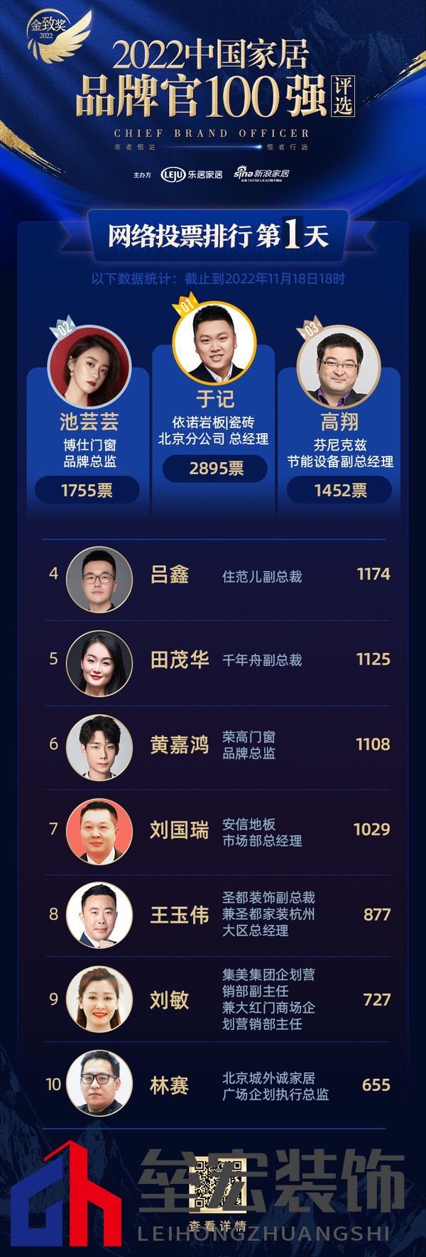 ??網(wǎng)絡(luò)票選通道一經(jīng)開通,引起廣大網(wǎng)友熱烈反響,眾多消費者踴躍參與投票,并將投票轉(zhuǎn)發(fā)至好友、朋友圈為值得信賴的家居品牌官助力。數(shù)據(jù)顯示,截止11月18日18時,「2022(第八屆)中國家居百強品牌官」評選活動首日累計收獲有效票數(shù)26041票。 ??票選首日,依諾巖板|瓷磚北京分公司總經(jīng)理 于記以2895票斬獲百強品牌官評選榜首位置。于記自2016年入職北京伊諾鐵軍,帶領(lǐng)團隊當(dāng)年銷售額破億元大關(guān),堅信品牌重在品質(zhì)交付、全方位為消費者權(quán)益保駕護航。在票選首日取得佳績,足以證明消費者對其的認可。 ??排名第二位的是博仕門窗品牌總監(jiān) 池蕓蕓,在票選首日獲得1755票。作為博仕門窗的品牌總監(jiān),全面統(tǒng)籌品牌建設(shè)與管理工作,為品牌煥發(fā)活力不斷努力。 ??排名第三位的是芬尼克茲節(jié)能設(shè)備副總經(jīng)理 高翔。高翔是熱泵行業(yè)的一名老戰(zhàn)士,在芬尼已經(jīng)15載,從研發(fā)做起,見證了行業(yè)的發(fā)展歷程。 ??四至六名分別是:住范兒副總裁呂鑫(1174票)、千年舟副總裁 田茂華(1125票)、榮高門窗品牌總監(jiān) 黃嘉鴻(1108票)、安信地板市場部總經(jīng)理 劉國瑞(1029票)、圣都裝飾副總裁兼圣都家裝杭州大區(qū)總經(jīng)理王玉偉(877票)、集美集團企劃營銷部副主任兼大紅門商場企劃營銷部主任 劉敏(727票)、北京城外誠家居廣場企劃執(zhí)行總監(jiān)林賽(655票)。 ??品牌力是生產(chǎn)者和消費者共同的追求,是供給側(cè)和需求側(cè)升級的方向,是企業(yè)乃至國家綜合競爭力的重要體現(xiàn)。我國不斷提出要加強品牌建設(shè)、提升我國品牌影響力和競爭力,以優(yōu)化供給、擴大需求、推動高質(zhì)量發(fā)展。作為我國制造業(yè)中重要的組成部分,家居行業(yè)擔(dān)負著推動“中國制造”向“中國創(chuàng)造”轉(zhuǎn)變的歷史進程。而每一個家居企業(yè)的“品牌力”建設(shè)也是促進行業(yè)健康發(fā)展、國家經(jīng)濟體系完善必不可少的堅實基礎(chǔ)。 ??中國家居“品牌官”擔(dān)負著中國家居品牌的形象建設(shè)與價值塑造,正是他們的存在,讓許多優(yōu)秀的中國家居品牌得以熠熠生輝。本屆金致獎評選致力于尋找和表彰發(fā)揮品牌引領(lǐng)作用、激發(fā)企業(yè)創(chuàng)新創(chuàng)造活力、樹立自主品牌消費信心的優(yōu)秀品牌官,傳遞品牌價值、推動行業(yè)發(fā)展,讓這些優(yōu)質(zhì)的家居產(chǎn)品被更多的消費者所熟知、選擇?!讣揖悠放乒佟故瞧髽I(yè)歷史的記錄與宣講者,他們將品牌珍貴且長期堅守的專業(yè)精神、工匠精神發(fā)揚光大,賦予品牌敢于在開放市場中公平競爭的勇氣和能力,也推動了全社會牢固樹立品牌意識,努力提高產(chǎn)品和服務(wù)的質(zhì)量與綜合競爭力,使更多中國品牌成為國內(nèi)外市場值得信賴的選擇。 ??「2022(第八屆)中國家居百強品牌官」評選致力于尋找和表彰發(fā)揮品牌引領(lǐng)作用、激發(fā)企業(yè)創(chuàng)新創(chuàng)造活力、樹立自主品牌消費信心的優(yōu)秀品牌官,希望通過對他們的宣講傳遞更多的品牌價值,推動行業(yè)整體健康有序的發(fā)展。 ??網(wǎng)友可通過網(wǎng)絡(luò)票選入口進行投票及查看您關(guān)注的品牌官或者各位品牌官實時票數(shù)動態(tài)。 ??據(jù)悉,本次網(wǎng)絡(luò)票選為期七天,從11月18日起至11月24日,在全國范圍內(nèi)同時展開。本次票選在「2022(第八屆)中國家居百強品牌官」網(wǎng)絡(luò)票選專題舉行,投票者既可在每個家居品牌官個人頁面進行投票,同時可將品牌官個人頁面分享至朋友圈等社交網(wǎng)絡(luò)為其拉票。樂居家居、新浪家居為本次票選唯一投票通道。 ??請為您心中的2022中國家居品牌官100強候選人投上寶貴一票! |