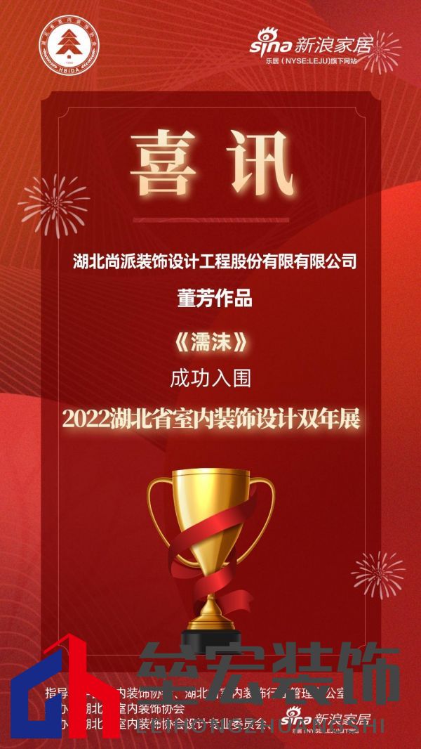 | 綠色設(shè)計,大美荊楚,由中國室內(nèi)裝飾協(xié)會、湖北省室內(nèi)裝飾行業(yè)管理辦公室的指導(dǎo),湖北省室內(nèi)裝飾協(xié)會主辦的2022湖北室內(nèi)裝飾設(shè)計雙年展,在室內(nèi)裝飾設(shè)計行業(yè)打造了一場全省范圍的設(shè)計盛會,首輪評選百余套作品,70余套優(yōu)秀作品成功入圍。 在智能化、人文化、健康舒適化的時代趨勢下,雙年展的舉辦,以新時代、新理念、新創(chuàng)意,提升室內(nèi)裝飾設(shè)計水平,為設(shè)計師進(jìn)行品牌賦能,弘揚(yáng)荊楚設(shè)計精神與風(fēng)貌。針對這項有權(quán)威性、有知名度的專業(yè)賽事,武漢各大裝飾公司及設(shè)計工作室積極響應(yīng),因為參加雙年展對設(shè)計師開拓視野、加強(qiáng)行業(yè)交流、提升專業(yè)水平具有重要意義。 雙年展專家組評委秉承公正公平、優(yōu)中選優(yōu)的原則,經(jīng)過層層篩選,初評結(jié)果現(xiàn)已出爐。 設(shè)計滋養(yǎng)生活,生活反哺設(shè)計,優(yōu)秀的作品,總是離不開對藝術(shù)矢志不移的熱情與探索,以及對美與愛的深度感知,雙年展入圍作品均對此進(jìn)行了完美的詮釋。 湖北尚派裝飾設(shè)計工程股份有限公司設(shè)計師董芳原創(chuàng)作品《濡沫》,成功入圍2022湖北省室內(nèi)裝飾設(shè)計雙年展,以獨(dú)特的設(shè)計風(fēng)格,和優(yōu)秀的設(shè)計能力,展示設(shè)計理念和創(chuàng)意。