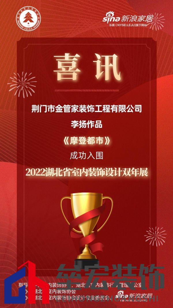 | 綠色設(shè)計(jì),大美荊楚,由中國室內(nèi)裝飾協(xié)會(huì)、湖北省室內(nèi)裝飾行業(yè)管理辦公室的指導(dǎo),湖北省室內(nèi)裝飾協(xié)會(huì)主辦的2022湖北室內(nèi)裝飾設(shè)計(jì)雙年展,在室內(nèi)裝飾設(shè)計(jì)行業(yè)打造了一場(chǎng)全省范圍的設(shè)計(jì)盛會(huì),首輪評(píng)選百余套作品,70余套優(yōu)秀作品成功入圍。 在智能化、人文化、健康舒適化的時(shí)代趨勢(shì)下,雙年展的舉辦,以新時(shí)代、新理念、新創(chuàng)意,提升室內(nèi)裝飾設(shè)計(jì)水平,為設(shè)計(jì)師進(jìn)行品牌賦能,弘揚(yáng)荊楚設(shè)計(jì)精神與風(fēng)貌。針對(duì)這項(xiàng)有權(quán)威性、有知名度的專業(yè)賽事,武漢各大裝飾公司及設(shè)計(jì)工作室積極響應(yīng),因?yàn)閰⒓与p年展對(duì)設(shè)計(jì)師開拓視野、加強(qiáng)行業(yè)交流、提升專業(yè)水平具有重要意義。 雙年展專家組評(píng)委秉承公正公平、優(yōu)中選優(yōu)的原則,經(jīng)過層層篩選,初評(píng)結(jié)果現(xiàn)已出爐。 設(shè)計(jì)滋養(yǎng)生活,生活反哺設(shè)計(jì),優(yōu)秀的作品,總是離不開對(duì)藝術(shù)矢志不移的熱情與探索,以及對(duì)美與愛的深度感知,雙年展入圍作品均對(duì)此進(jìn)行了完美的詮釋。 荊門市金管家裝飾工程有限公司設(shè)計(jì)師李揚(yáng)原創(chuàng)作品《摩登都市》,成功入圍2022湖北省室內(nèi)裝飾設(shè)計(jì)雙年展,以獨(dú)特的設(shè)計(jì)風(fēng)格,和優(yōu)秀的設(shè)計(jì)能力,展示設(shè)計(jì)理念和創(chuàng)意。