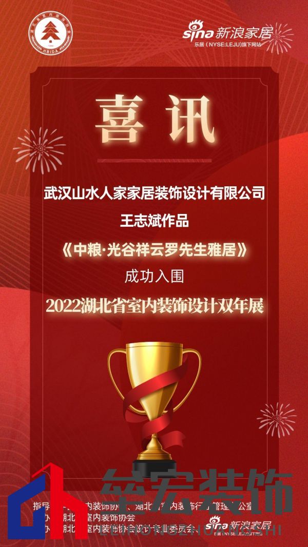 | 綠色設計,大美荊楚,由中國室內(nèi)裝飾協(xié)會、湖北省室內(nèi)裝飾行業(yè)管理辦公室的指導,湖北省室內(nèi)裝飾協(xié)會主辦的2022湖北室內(nèi)裝飾設計雙年展,在室內(nèi)裝飾設計行業(yè)打造了一場全省范圍的設計盛會,首輪評選百余套作品,70余套優(yōu)秀作品成功入圍。 在智能化、人文化、健康舒適化的時代趨勢下,雙年展的舉辦,以新時代、新理念、新創(chuàng)意,提升室內(nèi)裝飾設計水平,為設計師進行品牌賦能,弘揚荊楚設計精神與風貌。針對這項有權威性、有知名度的專業(yè)賽事,武漢各大裝飾公司及設計工作室積極響應,因為參加雙年展對設計師開拓視野、加強行業(yè)交流、提升專業(yè)水平具有重要意義。 雙年展專家組評委秉承公正公平、優(yōu)中選優(yōu)的原則,經(jīng)過層層篩選,初評結(jié)果現(xiàn)已出爐。 設計滋養(yǎng)生活,生活反哺設計,優(yōu)秀的作品,總是離不開對藝術矢志不移的熱情與探索,以及對美與愛的深度感知,雙年展入圍作品均對此進行了完美的詮釋。 武漢山水人家家居裝飾設計有限公司設計師王志斌原創(chuàng)作品《中糧·光谷祥云羅先生雅居》,成功入圍2022湖北省室內(nèi)裝飾設計雙年展,以獨特的設計風格,和優(yōu)秀的設計能力,展示設計理念和創(chuàng)意。