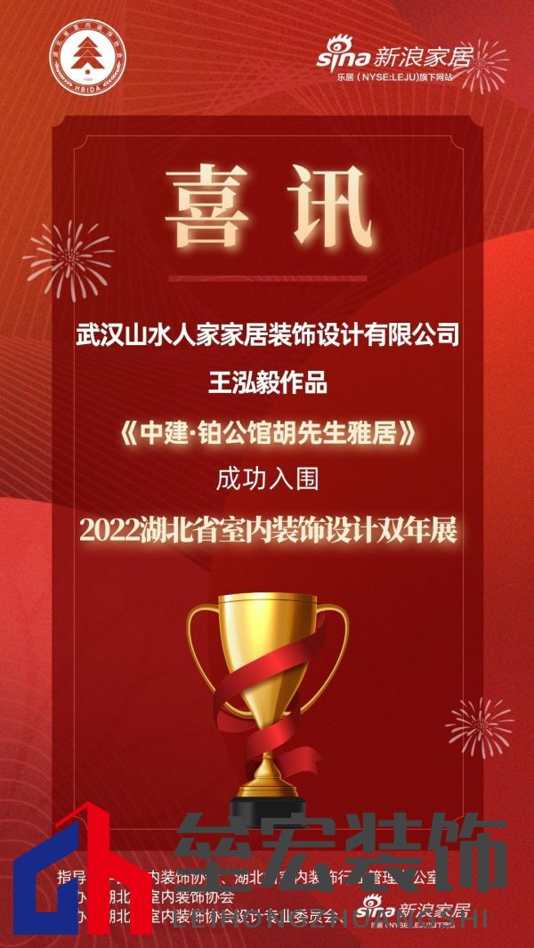 | 綠色設(shè)計,大美荊楚,由中國室內(nèi)裝飾協(xié)會、湖北省室內(nèi)裝飾行業(yè)管理辦公室的指導,湖北省室內(nèi)裝飾協(xié)會主辦的2022湖北室內(nèi)裝飾設(shè)計雙年展,在室內(nèi)裝飾設(shè)計行業(yè)打造了一場全省范圍的設(shè)計盛會,首輪評選百余套作品,70余套優(yōu)秀作品成功入圍。 在智能化、人文化、健康舒適化的時代趨勢下,雙年展的舉辦,以新時代、新理念、新創(chuàng)意,提升室內(nèi)裝飾設(shè)計水平,為設(shè)計師進行品牌賦能,弘揚荊楚設(shè)計精神與風貌。針對這項有權(quán)威性、有知名度的專業(yè)賽事,武漢各大裝飾公司及設(shè)計工作室積極響應,因為參加雙年展對設(shè)計師開拓視野、加強行業(yè)交流、提升專業(yè)水平具有重要意義。 雙年展專家組評委秉承公正公平、優(yōu)中選優(yōu)的原則,經(jīng)過層層篩選,初評結(jié)果現(xiàn)已出爐。 設(shè)計滋養(yǎng)生活,生活反哺設(shè)計,優(yōu)秀的作品,總是離不開對藝術(shù)矢志不移的熱情與探索,以及對美與愛的深度感知,雙年展入圍作品均對此進行了完美的詮釋。 武漢山水人家家居裝飾設(shè)計有限公司設(shè)計師王泓毅原創(chuàng)作品《中建·鉑公館胡先生雅居》,成功入圍2022湖北省室內(nèi)裝飾設(shè)計雙年展,以獨特的設(shè)計風格,和優(yōu)秀的設(shè)計能力,展示設(shè)計理念和創(chuàng)意。