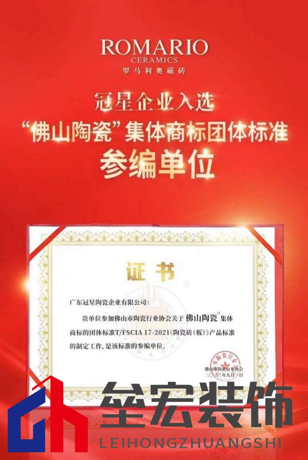??冠星企業(yè)入選“佛山陶瓷集體商標(biāo)團(tuán)體標(biāo)準(zhǔn)”參編單位 ??1999年創(chuàng)立至今,羅馬利奧專(zhuān)注陶瓷本業(yè),始終秉承精益求精的工匠精神,持續(xù)塑造強(qiáng)大的產(chǎn)品價(jià)值體系。多年來(lái),羅馬利奧堅(jiān)持廣東原廠原產(chǎn),在廣東建有兩個(gè)現(xiàn)代化環(huán)保智造基地,憑借雄厚的生產(chǎn)實(shí)力、先進(jìn)的智造技術(shù)以及強(qiáng)大的創(chuàng)新能力,持續(xù)向終端市場(chǎng)輸送高品質(zhì)、高顏值、高價(jià)值的磁磚精品,深受廣大高端消費(fèi)者的喜愛(ài)與認(rèn)可。