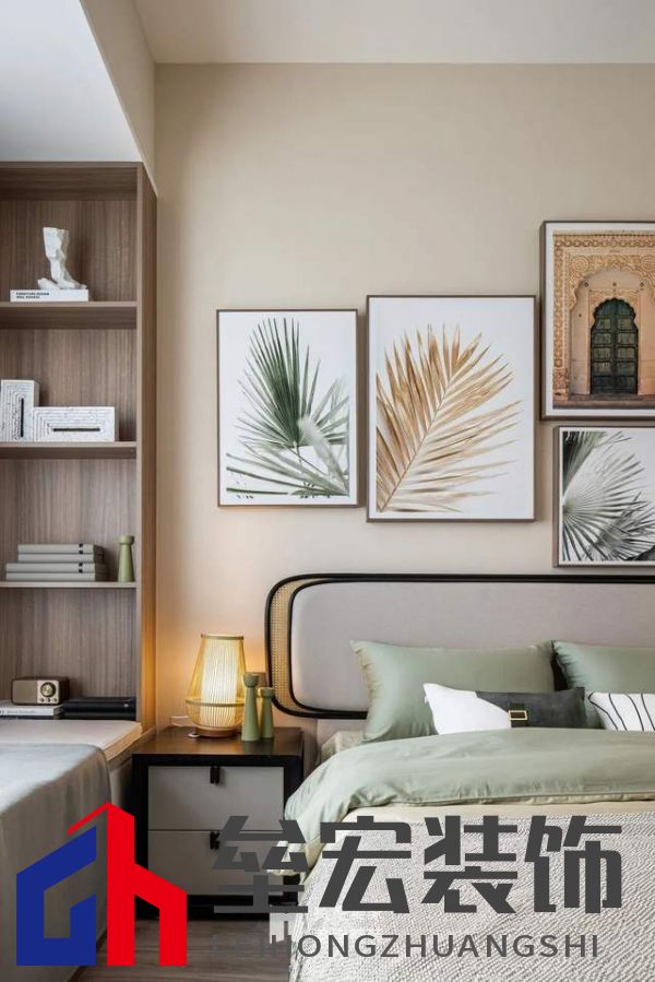 ??以豆綠色與米咖色相結(jié)合,床頭燈、頂燈、邊柜采用竹編元素來塑造,光源彌漫擴(kuò)散,仿佛隨時(shí)可以沉浸在旅行的美好回憶之中。