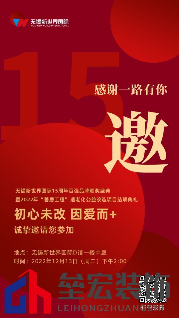 【活動預(yù)告】值此年終之際,為表彰和鼓勵先進(jìn),提高市場活力!12月13日下午2:00,無錫新世界國際15周年百強品牌頒獎盛典暨2022年“善居工程”&“頤居江溪”適老化公益改造項目結(jié)項典禮將在無錫新世界國際家居建材城二期·精品建材館一樓舉辦,誠摯的邀請您參加~期待您的關(guān)注和蒞臨,新浪家居將持續(xù)報道后續(xù)訪談內(nèi)容及頒獎盛況。 |