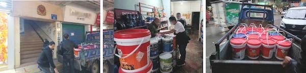 ??四川萬源市監(jiān)局查處1個門店,查扣山寨德高防水4桶。