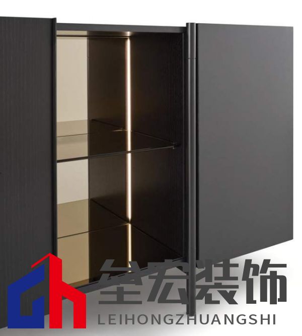 ??當(dāng)柜門呈180°打開時(shí),中間的玻璃擱架優(yōu)雅展示著每一件令人珍視的物件,兩側(cè)擱板則變身成為儲(chǔ)物的壁龕。