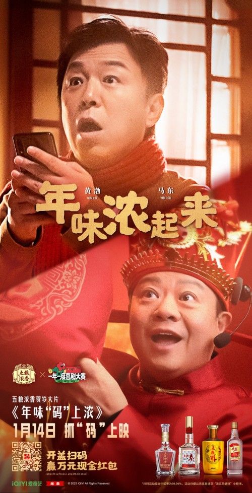 ??參與的方式也十分簡(jiǎn)單,消費(fèi)者僅需在“年味濃起來(lái)”活動(dòng)期間,通過(guò)購(gòu)買五糧濃香指定產(chǎn)品并完成開蓋掃碼動(dòng)作,即可參與抽獎(jiǎng),贏取五糧濃香為大家準(zhǔn)備的新年驚喜! ??黃渤馬東齊拜年 ??此外,今年的五糧濃香賀歲片里,也上演了一段因“紅包”而啼笑皆非的經(jīng)典戲碼!不走財(cái)運(yùn)的黃渤突然收到財(cái)神馬東的巨額紅包,是天降之財(cái)還是別有用心?是令人哭笑不得,還是皆大歡喜?是不是迫不及待想知道他們之間發(fā)生了什么樣的故事?關(guān)注愛奇藝、視頻號(hào)‘濃五的酒館’等平臺(tái),一起來(lái)看看他們帶來(lái)什么樣的精彩笑點(diǎn)吧。這個(gè)新年,和五糧濃香一起將“歡樂”與“年味”進(jìn)行到底!