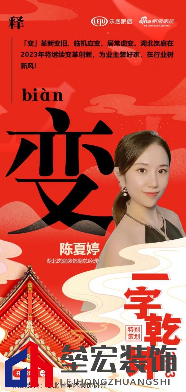 在新浪家居“2023一字乾坤”活動中,湖北嵐庭裝飾副總經(jīng)理陳夏婷:「變」革新變舊、臨機應變、居常慮變。湖北嵐庭在2023年將繼續(xù)變革創(chuàng)新,為業(yè)主裝好家,在行業(yè)樹新風! “以漢字賦能湖北家居企業(yè),彰顯厚積薄發(fā)之力”,以單字抒寫了各家企業(yè)及媒體的新年愿景與發(fā)展信條,領(lǐng)略楚風漢韻下湖北家居人砥礪向前,揚帆未來的決心與動力,情暖兔歲,新啟華章。 |