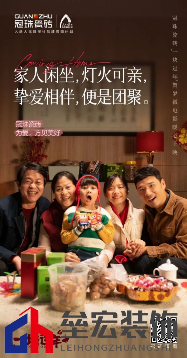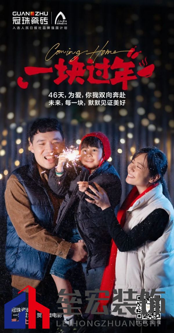 ??我們都說來日方長,實際上每一次的相聚,都是過期不候的一期一會!每一個新家、每一個年、每一頓團年飯、每一次的全家福,都值得我們?nèi)σ愿?,向摯愛奔赴?/p> ??冠珠瓷磚謹(jǐn)以《一塊過年》賀歲微電影獻禮廣大家庭,為美好生活提供更優(yōu)的人居方案,也祝愿大家:摯愛相伴、一塊過年、闔家幸福! |