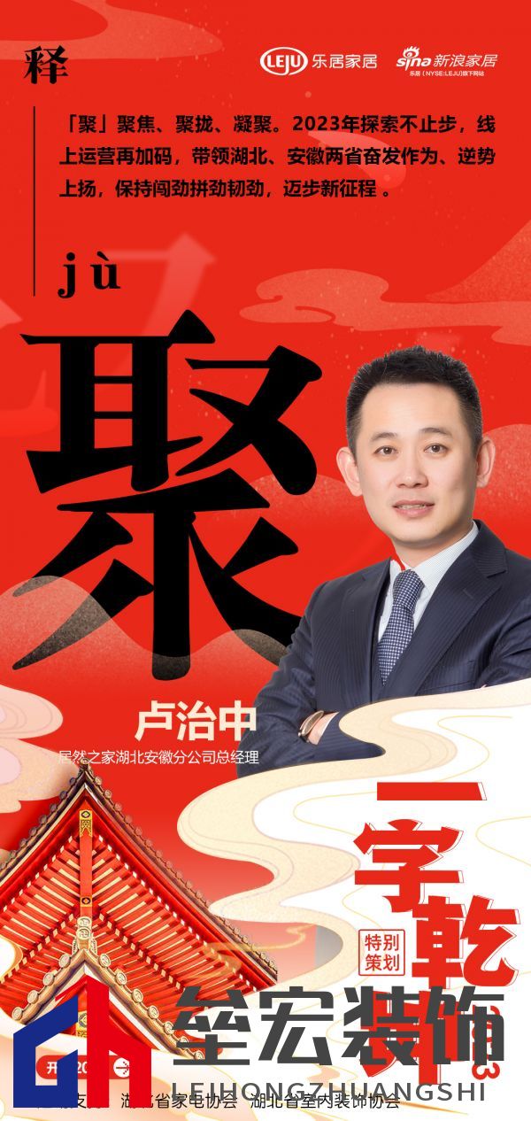 在新浪家居“2023一字乾坤”活動(dòng)中,居然之家湖北安徽分公司總經(jīng)理盧治中:「聚」聚焦、聚攏、凝聚。2023年探索不止步,線上運(yùn)營(yíng)再加碼,帶領(lǐng)湖北、安徽兩省奮發(fā)作為、逆勢(shì)上揚(yáng),保持闖勁拼勁韌勁,邁步新征程 。 “以漢字賦能湖北家居企業(yè),彰顯厚積薄發(fā)之力”,以單字抒寫(xiě)了各家企業(yè)及媒體的新年愿景與發(fā)展信條,領(lǐng)略楚風(fēng)漢韻下湖北家居人砥礪向前,揚(yáng)帆未來(lái)的決心與動(dòng)力,情暖兔歲,新啟華章。 |