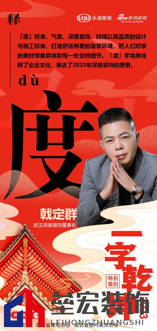 在新浪家居“2023一字乾坤”活動中,深度裝飾董事長戟定群:「度」標準,氣度。深度裝飾,持續(xù)以高品質(zhì)的設(shè)計與施工標準,打造舒適有愛的居家環(huán)境,把人們對家的美好想象具體到每一處空間細節(jié)?!付取棺滞昝涝忈屃似髽I(yè)文化,表達了2023年深度裝飾的愿景。 “以漢字賦能湖北家居企業(yè),彰顯厚積薄發(fā)之力”,以單字抒寫了各家企業(yè)及媒體的新年愿景與發(fā)展信條,領(lǐng)略楚風漢韻下湖北家居人砥礪向前,揚帆未來的決心與動力,情暖兔歲,新啟華章。 |