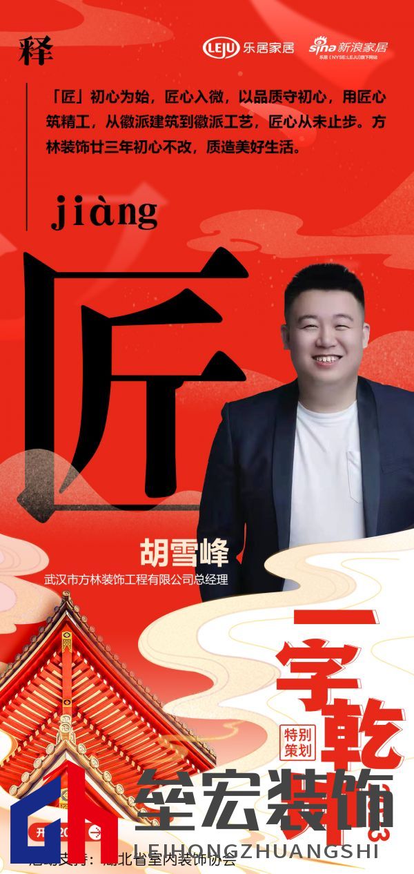 在新浪家居“2023一字乾坤”活動(dòng)中,武漢市方林裝飾工程有限公司總經(jīng)理胡雪峰:「匠」初心為始,匠心入微,以品質(zhì)守初心,用匠心筑精工,從徽派建筑到徽派工藝,匠心從未止步。方林裝飾廿三年初心不改,質(zhì)造美好生活。 “以漢字賦能湖北家居企業(yè),彰顯厚積薄發(fā)之力”,以單字抒寫了各家企業(yè)及媒體的新年愿景與發(fā)展信條,領(lǐng)略楚風(fēng)漢韻下湖北家居人砥礪向前,揚(yáng)帆未來的決心與動(dòng)力,情暖兔歲,新啟華章。 |