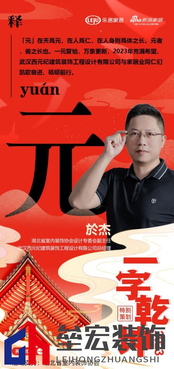 在新浪家居“2023一字乾坤”活動中,湖北省室內(nèi)裝飾協(xié)會設計專委會副主任、武漢西元紀建筑裝飾工程設計有限公司總經(jīng)理於杰:「元」在天爲元,在人爲仁,在人身則爲體之長。元者,善之長也。一元復始,萬象更新,2023年充滿希望,武漢西元紀建筑裝飾工程設計有限公司與家居業(yè)同仁們凱歌奮進、砥礪前行。 “以漢字賦能湖北家居企業(yè),彰顯厚積薄發(fā)之力”,以單字抒寫了各家企業(yè)及媒體的新年愿景與發(fā)展信條,領略楚風漢韻下湖北家居人砥礪向前,揚帆未來的決心與動力,情暖兔歲,新啟華章。 |