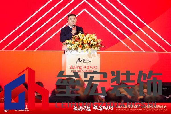 ??廣州建眾創(chuàng)始人 侯定文 ??廣州建眾創(chuàng)始人侯定文對消費者獲取裝修信息的渠道變化進行剖析解讀,分析了當前的市場流量變化和客流方向,就互聯(lián)網(wǎng)時代的新營銷模式為經(jīng)銷商伙伴進行培訓賦能,從本地新零售、服務營銷、私域客戶、深度運營能力等方面提出營銷破局之道,為在座經(jīng)銷商們提供了新的啟發(fā)。 ??奮楫揚帆 篤行不怠 ??2023年,對于云峰莫干山是具有轉折意義的一年。過去三年,疫情給家居行業(yè)的發(fā)展帶來了一定沖擊。莫干山作為國內(nèi)家居行業(yè)的著名品牌,始終專注初心,深耕綠色建材領域,積累了深厚的發(fā)展勢能。新的一年,面對逐步開放的政策,家居建材行業(yè)將迎來久違的高速發(fā)展,云峰莫干山也將抓住機會,趁勢而行。