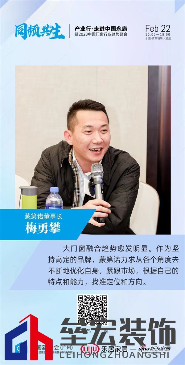 | ??2023年2月21-22日,中國建博會(廣州)聯(lián)合新浪家居特別舉辦“同頻共生——產(chǎn)業(yè)行走進(jìn)中國永康暨2023中國門窗行業(yè)趨勢峰會”。2月22日下午,2023中國門窗行業(yè)趨勢峰會正式舉行,中國優(yōu)秀門企、窗企共聚一堂,展開一場集深度、厚度、廣度的跨界私享交鋒。