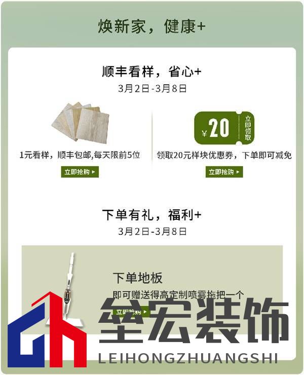 | 天貓“38煥新周”來啦,春季大促已然拉開帷幕,又逢家裝好時節(jié)。這對于很多想要開啟裝修大業(yè)的伙伴們來說是正是煥新家居的大好時機!家裝是一個整體的概念,其中地板是整個家居設計的載體和舞臺。選好地板對于增加家居質(zhì)感、保障家居舒適度至關重要。得高旗下眾多國際精品地板優(yōu)惠來襲、好價連連,趁大促搶進口好物,享健康家居!  得高天貓煥新周,天天享好禮! 3月2日-3月8日,瞄準下單,足不出戶薅羊毛! “順豐看樣,省心+”:1元看樣,順豐包郵,每天限前5位,先到先得! “下單有禮,福利+”:下單地板即可贈送得高定制噴霧拖把一個!  歡度38婦女節(jié),助力美好生活! 3月4日(20:00)-3月8日,“軟”地板、硬實力,傳遞新能量! “品質(zhì)認證,健康+”:得高葡萄牙進口軟木地板,精選花色品質(zhì)鉅惠,分享3人即可獲得800元優(yōu)惠券,被分享者可得500元優(yōu)惠券!前5位下單還可獲得800元大額紅包!  得高軟木地板源于地中海西岸的軟木橡樹表皮,是一種天然環(huán)保的資源性產(chǎn)品。軟木地板具有特殊的溫暖質(zhì)感。因為軟木是蜂窩狀結(jié)構,每立方厘米有4000萬個氣囊,因此它天然具備了保溫隔熱的功效,不會快速散熱,可以營造適合人居的環(huán)境,符合"溫足涼頂"的中醫(yī)保健理論。此外,還有靜音降噪、柔和耐用、易于保養(yǎng)等特質(zhì)。得高軟木地板均具有日本F4星級環(huán)保證書,地板雖“軟”,實力卻“硬”?!?8煥新周”選擇軟木,將會給新家?guī)硪庀氩坏降捏@喜。 3月4日(20:00)-3月8日,“夢想系列”惠動三八,煥新美家 “一價全包,優(yōu)惠+ ”:得高比利時進口Quick-Step“夢想系列”強化復合地板,爆品一價全包,全包優(yōu)惠價再送配套輔料,省錢省力更省心!無需滿減,下單立減10%,9折鉅惠福利享不停!  地板設計,顏色和風格的選擇能否體現(xiàn)豐富的內(nèi)涵,對于家居的整體氛圍的營造至關重要。得高Quick-Step強化復合木地板是比利時著名廠家UNILIN公司的主打品牌,Quick-Step地板的多項全球科技創(chuàng)造在地板界掀起了一次又一次的革命浪潮,如果你想選擇一款健康耐用的“地熱地板”,得高Quick-Step就是你的理想選擇。其每一款地板都由專業(yè)設計師團隊打造,“夢想系列”擁有多樣的花色選擇、經(jīng)典的尺寸設計,可以滿足家裝者對于理想家居的多種想象。我們,堅持用科技創(chuàng)新,將藝術地板以更環(huán)保、更經(jīng)濟的方式奉獻給大家。  得高,近30年的進口家居行業(yè)老品牌,質(zhì)量安心、服務放心,天貓得高家居旗艦店作為得高官方唯一指定的線上店鋪,其產(chǎn)品與線下專賣店產(chǎn)品同品同源,享受同樣保障。足不出戶感受世界精品建材,天貓“38煥新周”,來得高煥新家 健康+! |