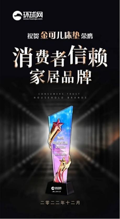 ??除了深耕中高端酒店市場,金可兒在民用品市場上也持續(xù)發(fā)力,以“護(hù)脊好睡眠”作為產(chǎn)品設(shè)計理念的多款床墊系列,深受中國消費者的喜愛。在2023年1月3日,由《人民日報》旗下全國重點網(wǎng)站“環(huán)球網(wǎng)”環(huán)球家居主辦的“2022環(huán)球家居甄選”榜單正式公布。作為家居行業(yè)備受關(guān)注的年度獎項之一,該獎項經(jīng)過了為期20天的公開網(wǎng)絡(luò)選票,并經(jīng)過專家考察及綜合評估最終揭曉,KINGKOIL金可兒以高票數(shù)榮膺“消費者信賴家居品牌”殊榮。