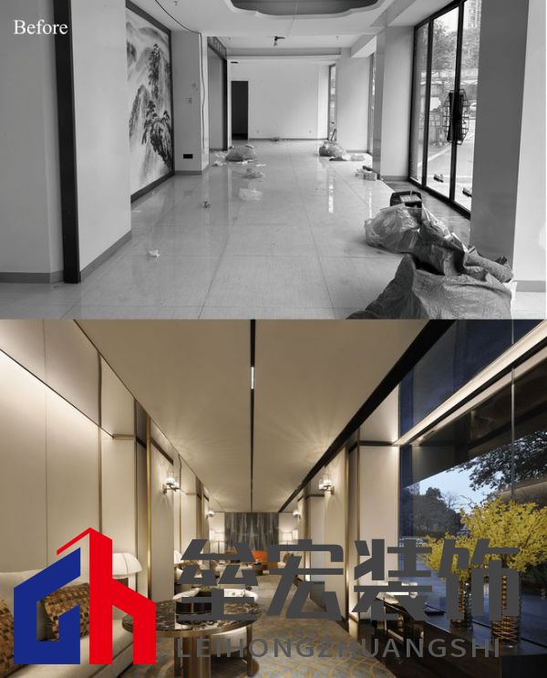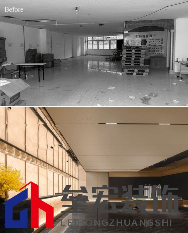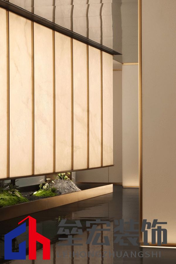 | 重塑新生 項目原是街邊的一個舊商鋪,經(jīng)過的時候,目光甚至不會在此過久停留,破舊,不起眼,無人在意,仿若靜靜地在等待著枯敗。面對這樣的項目,我們接到的設計任務是將其改造為一個臨時銷售中心。打破項目原始印象,重塑空間的文化與氛圍,重建人與在地文化,人與人之間的緊密鏈接,為其注入獨立的靈魂,成為了設計上的課題。 在保留原始建筑結(jié)構(gòu)的基礎上,我們以“東方詩意”為主題,讓空間每個區(qū)域都有其特有的特點,化用古典美學,由此將空間進行連貫處理,讓場域與文化產(chǎn)生聯(lián)系。   在花城,聽松風 在東方美學當中,無論是書法、畫作、園林及建筑,留白常被廣泛應用,來實現(xiàn)一種輕盈與簡潔的意境。接待前廳從空間的角度,對留白美學進行詮釋。在設計上選擇強調(diào)其通透性:前臺的玻璃水晶吊燈與通透的石材墻形成序列,用點、線構(gòu)筑面的意象。硬裝沒有繁雜的紋理,或是濃墨重彩的手法,更著重于人在空間中所感受到的韻律。