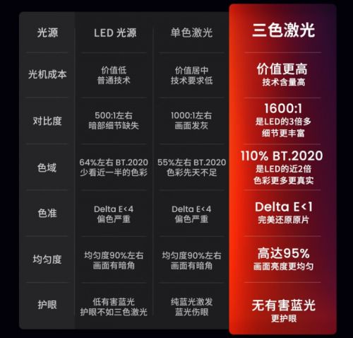 ??售價(jià)不低依然被買爆的背后,說明中國(guó)的高技術(shù)含量產(chǎn)品在國(guó)外也可以獲得很好的盈利能力,Made in China不再停留在低價(jià)低技術(shù)含量的刻板印象中。另一方面也是向全世界的用戶宣告,中國(guó)高科技不止停留在衛(wèi)星與航母這樣的星辰大海領(lǐng)域,早已經(jīng)滲透到了普通人的生活中,可以說堅(jiān)果成功進(jìn)行了文化輸出。 ??目氪?三色激光光機(jī)全面領(lǐng)先LED ??從奧斯卡大咖到國(guó)內(nèi)影人,從職業(yè)影人到海內(nèi)外廣大消費(fèi)者,堅(jiān)果投影既能獲得專業(yè)資深人士的認(rèn)證,又能或得廣大消費(fèi)者的認(rèn)可,這實(shí)屬不易。而這份不易的背后是堅(jiān)果對(duì)技術(shù)的執(zhí)著,對(duì)于產(chǎn)品的信念,以及對(duì)為用戶負(fù)責(zé)的態(tài)度。 ??堅(jiān)果投影深諳三色激光投影優(yōu)于LED,盡管做好三色激光投影的難度巨大,但還是義無反顧的選擇了那條最難的路。為了做好三色激光投影儀,堅(jiān)果工程師團(tuán)隊(duì)從最核心的光源開始研發(fā),歷時(shí)三年自研出了MALC 目氪?三色激光光機(jī),一舉解決了三色激光成本高、體積大、有散斑這三座大山。 ??三座大山的背后,凝聚了堅(jiān)果投影多項(xiàng)核心技術(shù)。首先,MALC 目氪?三色激光光機(jī)通過模組化激光堆疊技術(shù),解決掉了傳統(tǒng)光機(jī)體積大、成本高等問題,再通過首創(chuàng)的LSR動(dòng)態(tài)消散斑專利技術(shù),又解決掉了三色激光投影儀的散斑問題。此外,該三色激光光機(jī)還支持400分區(qū)四層復(fù)眼勻光系統(tǒng),讓投影畫面均勻度超過95%,從而讓它的亮度和色彩顯示效果更精準(zhǔn)。因?yàn)檫@些技術(shù)的運(yùn)用,才讓三色激光投影能夠與更多的消費(fèi)者見面。