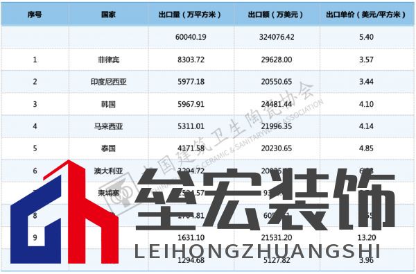 ??京東MALL四川首店即將試營業(yè) ??營業(yè)面積近4萬平方米的京東MALL四川首店落戶成都高新區(qū),將于3月15日開啟試營業(yè),并同期舉辦春季家博薈活動。據(jù)介紹,京東MALL成都店作為京東自營商業(yè)體,經(jīng)營200多個一線品牌,20多萬種商品。全渠道經(jīng)營家電、手機、電腦、數(shù)碼、清潔電器、生活電器、建材衛(wèi)浴、家具家居等品類,融入電競游戲、咖啡冰酒、美食烘焙、美妝個護、家場景、兒童樂園等體驗業(yè)態(tài)。 ??2024年泰國陶衛(wèi)行業(yè)整體收入69億元 ??2024年,消費需求疲軟與成本壓力成為泰國陶衛(wèi)行業(yè)共性挑戰(zhàn)。2024年,泰國墻地磚和銷售額皆有所下滑,整體收入325億泰銖(合人民幣69.8億元)。2024年,墻地磚產(chǎn)量為107030712.64平方米,總銷售為225億泰銖(合人民幣48億元);衛(wèi)生陶瓷銷量為5058169件,總銷售額99億泰銖(合人民幣21億元),其中馬桶銷量2863070件,銷售額75億泰銖(合人民幣16.1億元);小便斗銷售188194件,銷售額3.6億泰銖(合人民幣7813萬元);面盆銷售1905354件,銷售20億泰銖(合人民幣4.3億元)。 ??4家陶企向40家裝企提起訴訟 ??據(jù)業(yè)內(nèi)媒體不完全統(tǒng)計,2024年以來,全國共有125家裝飾裝修公司宣告破產(chǎn)。與此同時,受整裝、家裝渠道的影響,陶瓷企業(yè)與裝修公司的糾紛也在不斷上升。以4家陶瓷企業(yè)的訴訟情況為例,2024年以來,合計與40家裝修公司提起訴訟,均為買賣合同糾紛影響。 ??2024年我國陶瓷磚出口額暴跌33.26% ,創(chuàng)八年新低 ??據(jù)中國建筑衛(wèi)生陶瓷協(xié)會發(fā)布的數(shù)據(jù)顯示,2024年,我國陶瓷磚出口量維持在6.00億平方米,同比下降2.86%,出口單價同比下跌31.30%至5.40美元/平方米,導(dǎo)致出口額從48.56億美元降至32.41億美元,同比降幅達(dá)33.26%,為近八年新低。2024年,中國陶瓷磚出口前十大目的地國家/地區(qū)的出口總量為4.02億平方米,占總出口量的66.92%。2024年,廣東、福建、山東、遼寧、廣西為我國陶瓷磚出口前五大省份,合計出口量占比達(dá)91.93%,與2023年(92.51%)基本持平。與2023年相比,浙江跌出前五,廣西上升至第5位。