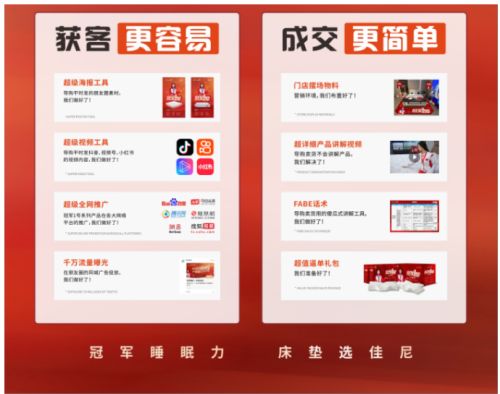 ?全域營(yíng)銷生態(tài) 破解終端流量困局? 面對(duì)線下流量萎縮的行業(yè)痛點(diǎn),佳尼構(gòu)建"線上引爆+線下承接"的全域營(yíng)銷體系。 在線上端,總部抖音代運(yùn)營(yíng)團(tuán)隊(duì)為經(jīng)銷商提供定制化內(nèi)容服務(wù):每月產(chǎn)出30條爆款視頻模板,結(jié)合同城精準(zhǔn)流量扶持,實(shí)現(xiàn)單店月度曝光量超500萬次。柳州經(jīng)銷商通過"探店短視頻+直播間滿減券"組合拳,線上引流成交額達(dá)70-90萬/月。長(zhǎng)沙宅美家商場(chǎng)數(shù)據(jù)顯示,5款核心床墊產(chǎn)品貢獻(xiàn)90%年度銷售額。更通過"爆品組合包"模式,實(shí)現(xiàn)8款床墊、5款軟床、4款沙發(fā)的場(chǎng)景化天津唯尚一品門店年提貨200萬元。