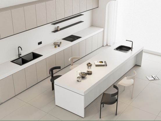 蒂羅寶攜手全球抗菌技術(shù)專家美國妙抗保?,在臺面制造過程中,內(nèi)建SilverShield??抗菌技術(shù);采用高純3A 級天然石英砂 + 柔拋技術(shù) , 表面溫潤如玉 , 極致觸摸手感?, 物理亮度達50度以上 , 更致密、更耐候、更抗污;源于高山、流水、云海、雪原等自然景觀的靈感?, 以極簡、干凈、明亮、潔凈的產(chǎn)品開發(fā)理念?, 完美貼合高質(zhì)高端烹飪區(qū)域臺面需求。 抗菌石英石臺面優(yōu)勢: 可與食品直接接觸 減少交叉污染的風險 防止細菌引起的異味 提供長期抗菌保護 抑制大腸桿菌、金黃色葡萄球菌等多種細菌生長,有效抗菌率高達99.99%