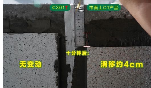 ??解碼“T”背后的抗滑移黑科技 ??瓷磚膠型號(hào)中的“T”代表抗滑移技術(shù)(Anti-Slip Technology)。針對(duì)大磚鋪貼時(shí)因自重導(dǎo)致的下滑難題,C301T通過優(yōu)化分子結(jié)構(gòu)與粘結(jié)力分布,實(shí)現(xiàn)快速定型、長期穩(wěn)固不位移。