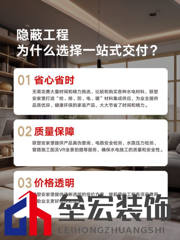 ??在施工環(huán)節(jié),聯(lián)塑安家堡水電暖隱蔽工程整體交付服務更是一大亮點。它制定了多項嚴格標準,讓施工過程透明化,驗收標準化。以往業(yè)主總是擔心施工過程不規(guī)范,需要全程盯工地,而現(xiàn)在,聯(lián)塑通過嚴格的流程把控,讓業(yè)主無需如此勞心勞力。施工流程透明化,業(yè)主可以隨時了解工程進度與細節(jié),就像給施工過程安裝了 “監(jiān)控器”。從管道鋪設到電路連接,每一個步驟都有聯(lián)塑的嚴格標準作為支撐,確保隱蔽工程交付品質。